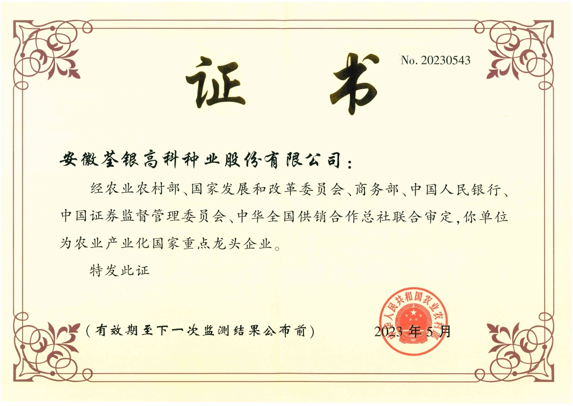 2024年07月安徽荃銀高科種業(yè)股份有限公司是一家“以種業(yè)為核心、農(nóng)業(yè)服務(wù)為延伸、探索和創(chuàng)新農(nóng)業(yè)多元化發(fā)展”的現(xiàn)代高科技種業(yè)上市公司,證券代碼:300087。公司注冊(cè)資金9.47億元,系“中國(guó)種業(yè)領(lǐng)軍企業(yè)、農(nóng)業(yè)產(chǎn)業(yè)化國(guó)家重點(diǎn)龍頭企業(yè)、國(guó)家高新技術(shù)企業(yè)、農(nóng)業(yè)部首批農(nóng)作物種子育繁推一體化企業(yè)、中國(guó)種業(yè)信用明星企業(yè)"。在國(guó)內(nèi)控股子公司20多家,在國(guó)外設(shè)立分支機(jī)構(gòu)4家,良種銷售至全國(guó)20多個(gè)省(市、區(qū)),出口覆蓋20多個(gè)國(guó)家與地區(qū),種業(yè)綜合實(shí)力、雜交水稻研發(fā)、推廣及海外業(yè)務(wù)規(guī)模均居全國(guó)種子企業(yè)前2位。