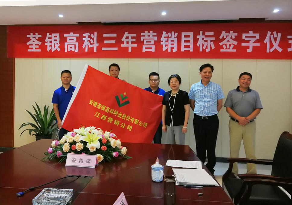 ??? 會上,荃銀高科副總經理朱全貴、營銷總監王玉林分別與玉米小麥專業公司、安徽營銷公司、江西營銷公司、湖北營銷公司、湖南營銷公司負責人簽訂三年經營協議書。