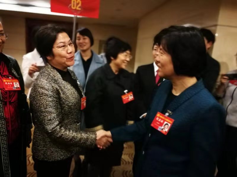 全國人大常委會副委員長、全國婦聯主席沈躍躍與張琴董事長親切交談
