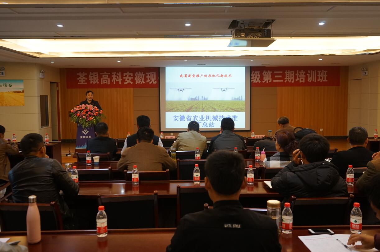 ??? 2018年12月3日,荃銀高科安徽現(xiàn)代農(nóng)場主2017級培訓(xùn)班第三期培訓(xùn)開班儀式在公司六樓多功能廳舉行。安徽荃銀高科董事長張琴、營銷總監(jiān)王玉林,培訓(xùn)班總教務(wù)長楊惠成老師,安徽張海銀種業(yè)基金會秘書長張彤,及來自全省各地100多位從事農(nóng)業(yè)種植的青年農(nóng)場主學(xué)員參加了本次培訓(xùn)。