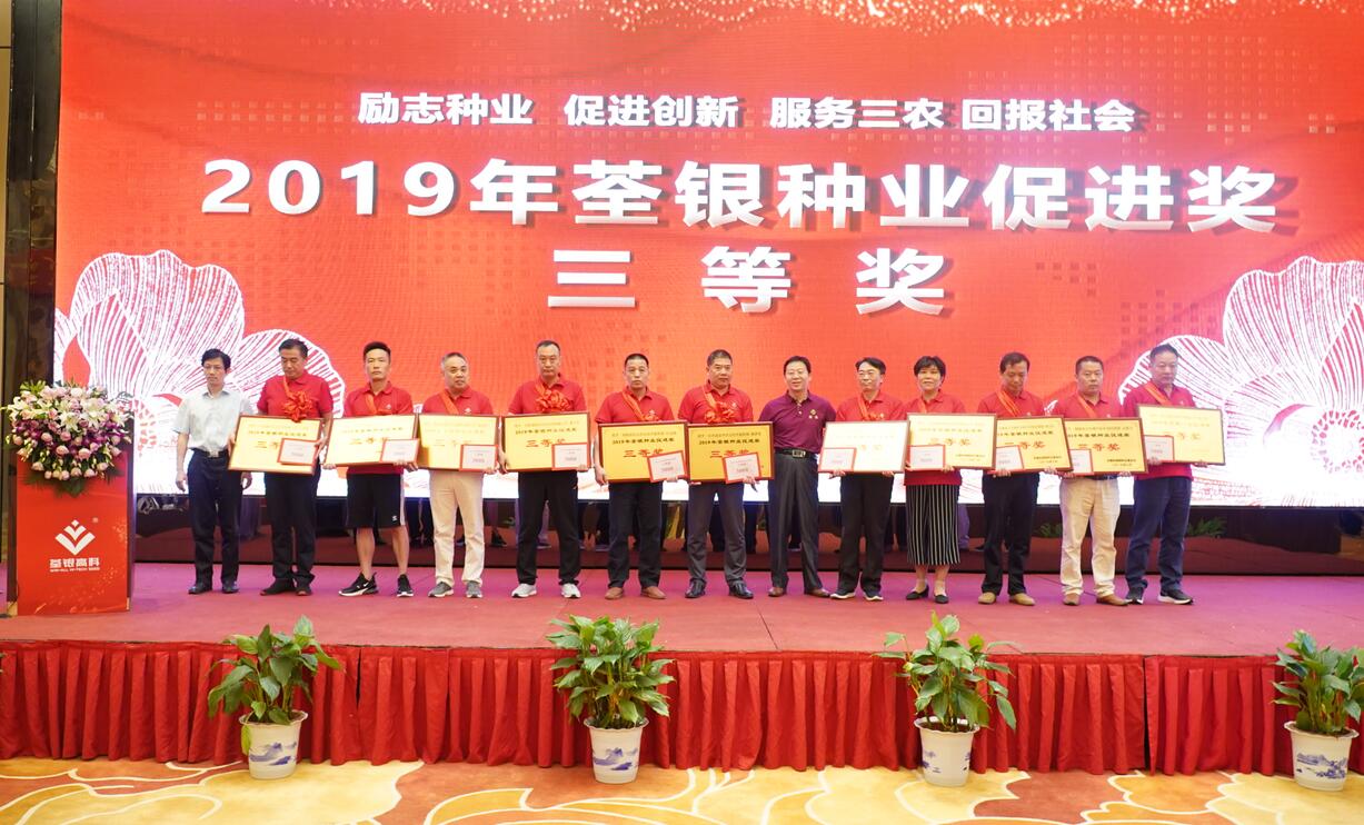 ??? 守初心擔使命,荃銀人深知企業的發展離不開社會的支持。會上,安徽張海銀種業基金會監事鄭滿生先生宣讀“荃銀種業促進獎”頒獎文件,大會向35名在優質水稻推廣和良種服務等方面取得優異成績的代表頒發了“荃銀種業促進獎”專項獎。