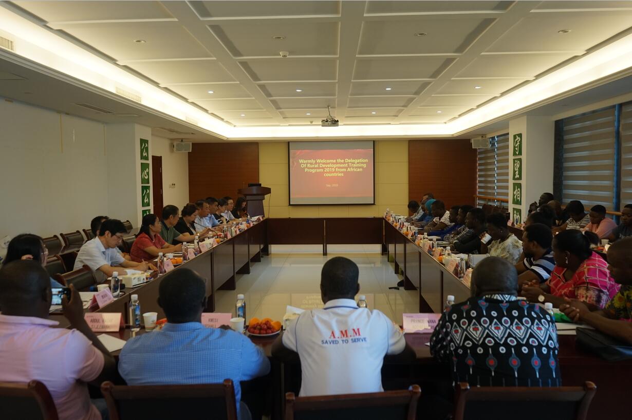 ??? 9月19日,商務(wù)部主辦、農(nóng)業(yè)農(nóng)村部管理干部學(xué)院組織“2019年非洲英語國家農(nóng)村發(fā)展研修班”蒞臨荃銀高科調(diào)研座談。農(nóng)業(yè)農(nóng)村部管理干部學(xué)院對外培訓(xùn)交流部主任望益群,安徽省農(nóng)業(yè)委員會外事外經(jīng)處調(diào)研員閆玉玲,合肥市農(nóng)業(yè)委員會外事外經(jīng)處處長吳正東等陪同調(diào)研。荃銀高科副董事長、總經(jīng)理張琴,工會主席兼辦公室主任鄭滿生,荃銀科技副總經(jīng)理金毅、總經(jīng)理助理丁松等參加了座談會。