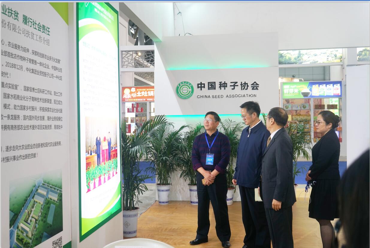 ??? 開(kāi)幕式后,民政部詹成付副部長(zhǎng)參觀了中國(guó)種子協(xié)會(huì)扶貧展廳,并在荃銀高科展板前駐足觀看,聽(tīng)取荃銀高科開(kāi)展扶貧工作匯報(bào),并給予高度評(píng)價(jià),中國(guó)種子協(xié)會(huì)鄧光聯(lián)副會(huì)長(zhǎng)陪同巡展。
