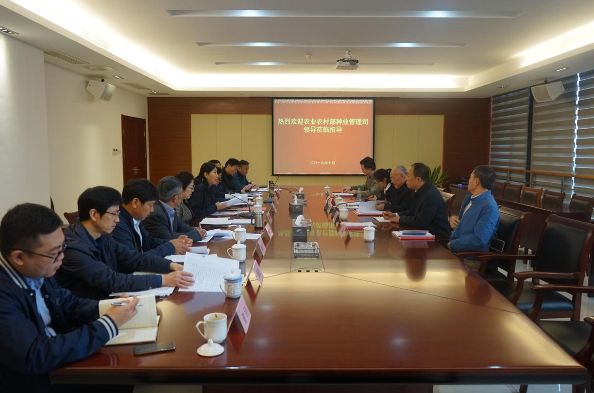 ??? 2019年10月27日,農(nóng)業(yè)農(nóng)村部種業(yè)管理司副司長孫好勤、種業(yè)管理司畜禽種業(yè)處處長鄒奎、中國農(nóng)科院作科所副處長魯玉清、全國畜牧總站牧業(yè)發(fā)展處干部邱小田等調(diào)研組一行來安徽開展現(xiàn)代種業(yè)發(fā)展調(diào)研,并在荃銀高科召開座談會。省農(nóng)業(yè)農(nóng)村廳種業(yè)管理處副處長胡濤,合肥市農(nóng)業(yè)農(nóng)村局總農(nóng)藝師張曉蓉、種植業(yè)局局長李祥陪同調(diào)研。荃銀高科副董事長兼總經(jīng)理張琴、常務副總經(jīng)理王玉林、副總經(jīng)理張從合,安徽省相關種業(yè)企業(yè)負責人及代表參加座談會。