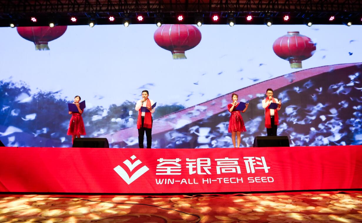 律回春暉漸,萬(wàn)象始更新。1月16日下午,荃銀高科2020年新春聯(lián)歡會(huì)在合肥舉辦,中國(guó)種業(yè)十大功勛人物、公司創(chuàng)始人張海銀先生,中化農(nóng)業(yè)副總裁、中種集團(tuán)公司總經(jīng)理、荃銀高科董事宋維波,中化農(nóng)業(yè)財(cái)務(wù)管理部總經(jīng)理高健、黨群工作部主任姚雁、戰(zhàn)略創(chuàng)新部總經(jīng)理樓向輝等中化農(nóng)業(yè)相關(guān)部門(mén)的領(lǐng)導(dǎo),公司產(chǎn)業(yè)合作伙伴、金融合作伙伴,社會(huì)愛(ài)心人士及志愿者,荃銀高科經(jīng)營(yíng)班子及各子(分)公司的領(lǐng)導(dǎo)、員工約600多人歡聚一堂,辭舊迎新,共迎新年。